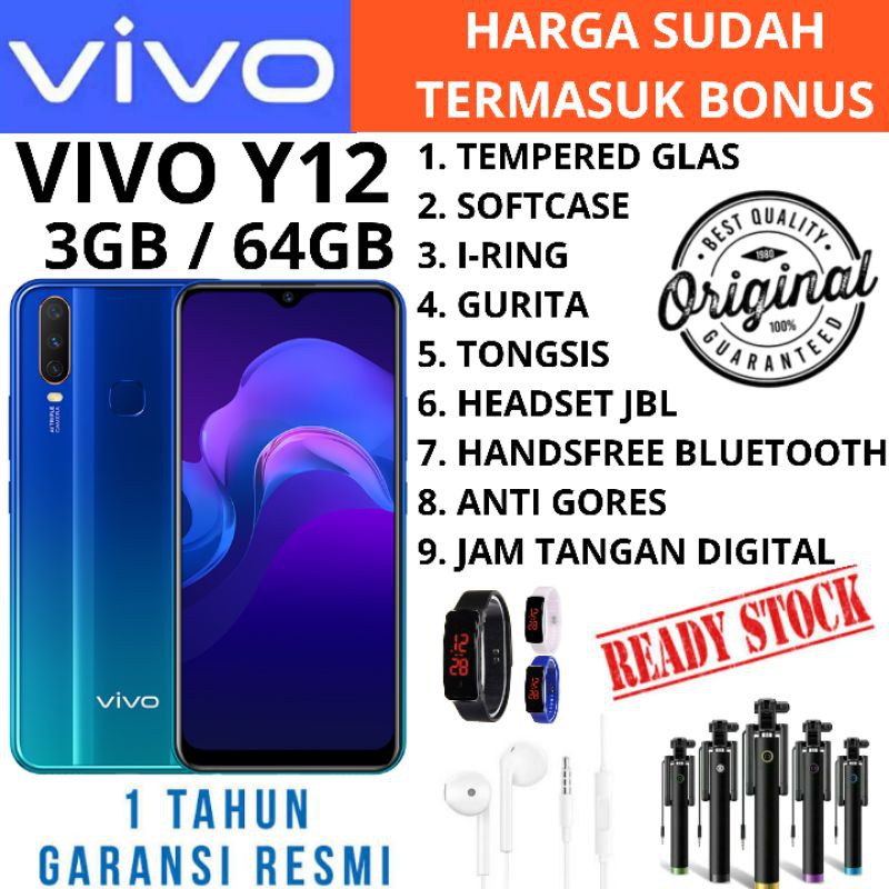 VIVO Y12 3/64 Y12i 3/32 RAM 3 ROM 64GB GARANSI RESMI VIVO .... Sistem operasi android 9.0 pie dengan antarmuka funtouch os 9. Harga vivo y12 dan spesifikasi. Cari hp dengan erforma mumpuni tapi harga murah? Periksa promo, review, spesifikasi, warna(agate red/mineral blue), release date/tanggal rilis, serta rekomendsi handphone hp lainnya di priceprice.com. Coba cek smartphone baru dari vivo yakni vivo y12i. Vivo x21 rp 7.000.000 lihat spesifikasi →. Funtouch os 9.1 (berdasarkan android 9). Untuk dimensinya sendiri cukup tebal yakni 159.4 x 76.8 x 8.9 mm dengan bobot. Vivo y12i spesifikasi dan harga. Vivo y12i vs vivo y12 sebenarnya memiliki banyak kesamaan jika dilihat dari desain fisik. Hadir dengan dua pilihan warna yakni mineral blue, agate red. Vivo berhak mengubah spesifikasi dan deskripsi, serta mengubah produk yang dijelaskan tanpa pemberitahuan sebelumnya. Y12i dokumentasi kabel usb pengisi daya sim ejector case pelindung lapisan pelindung layar (diaplikasikan). Ukuran layar adalah 6,35 inci diukur secara diagonal persegi panjang, sedangkan adalah 6,2 inci diukur secara diagonal pada sudut yang melengkung. Vivo y12i tersedia dalam dua varian warna, yakni mineral blue dan agate red.