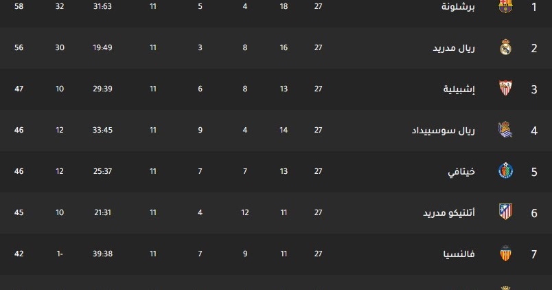 جدول ترتيب الدوري الإسباني بعد فوز نادي برشلونة على خيتافي ... - ترتيب الدوري الاسباني 5/1/2020اليوم برشلونه وريال مدريد اول الترتيب بنفس النقات.